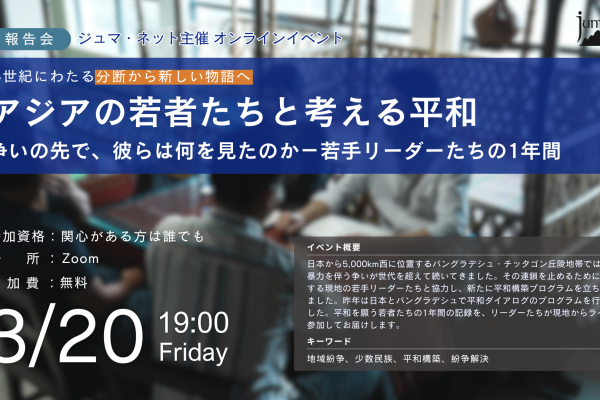ジュマ・ネットは、元紛争地や政治対立が深刻な地域で平和促進活動を行い、誰にとっても安心して生きられる社会づくりを目指していきます
